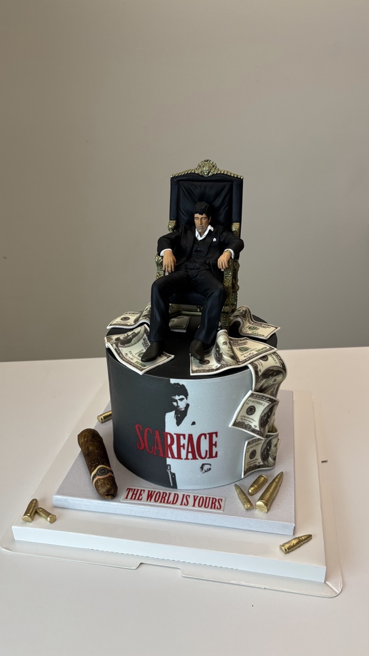 Le pedi un cake con Tony Montana/Scarface, Le envie una foto y Isa creo un cake Bello!!!! Quedamos encantados!